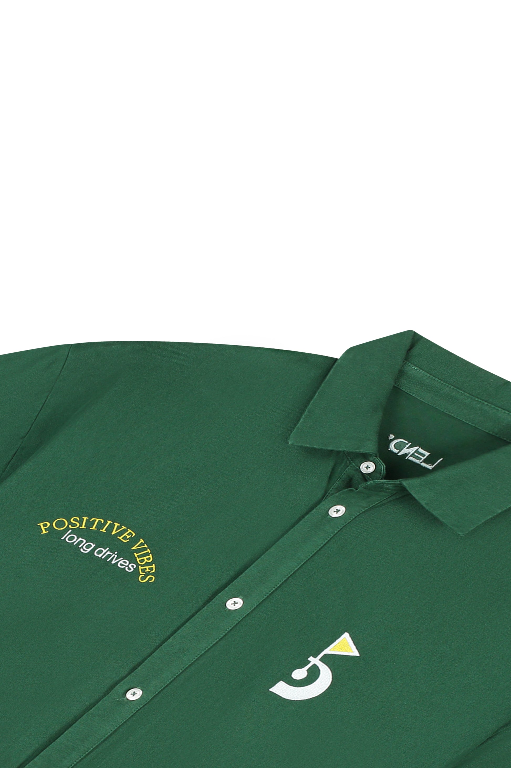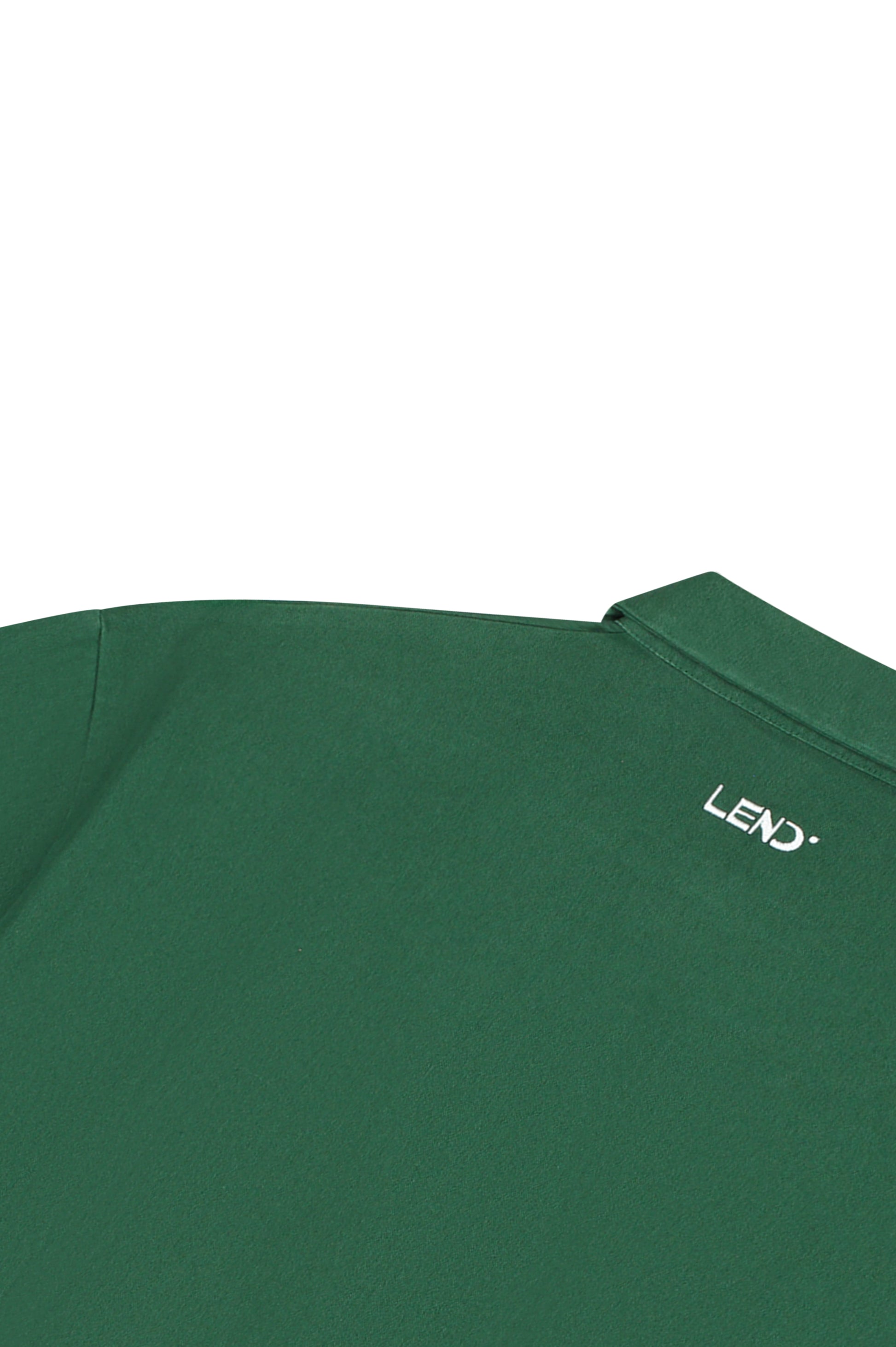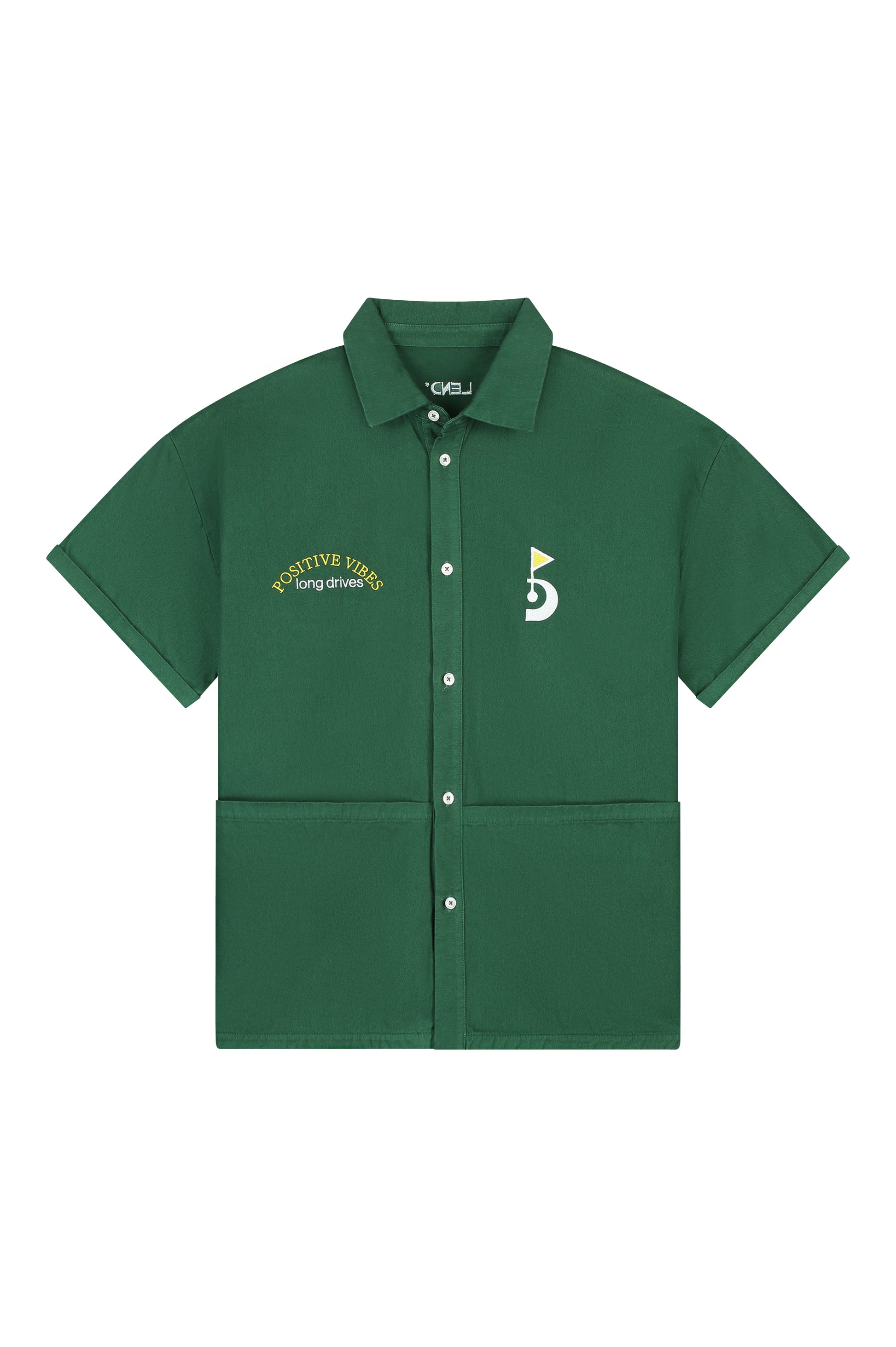 An overshirt built for cool mornings and golden hour rounds. Made from structured cotton with oversized front pockets and finished with subtle hits of LEND detailing. Features our signature flag mark and a reminder to keep it positive—on and off the course.