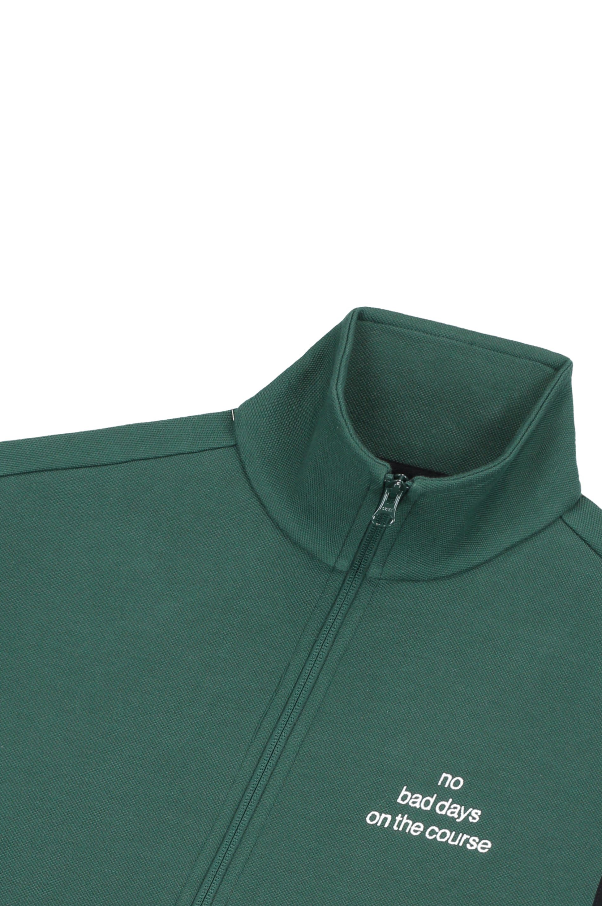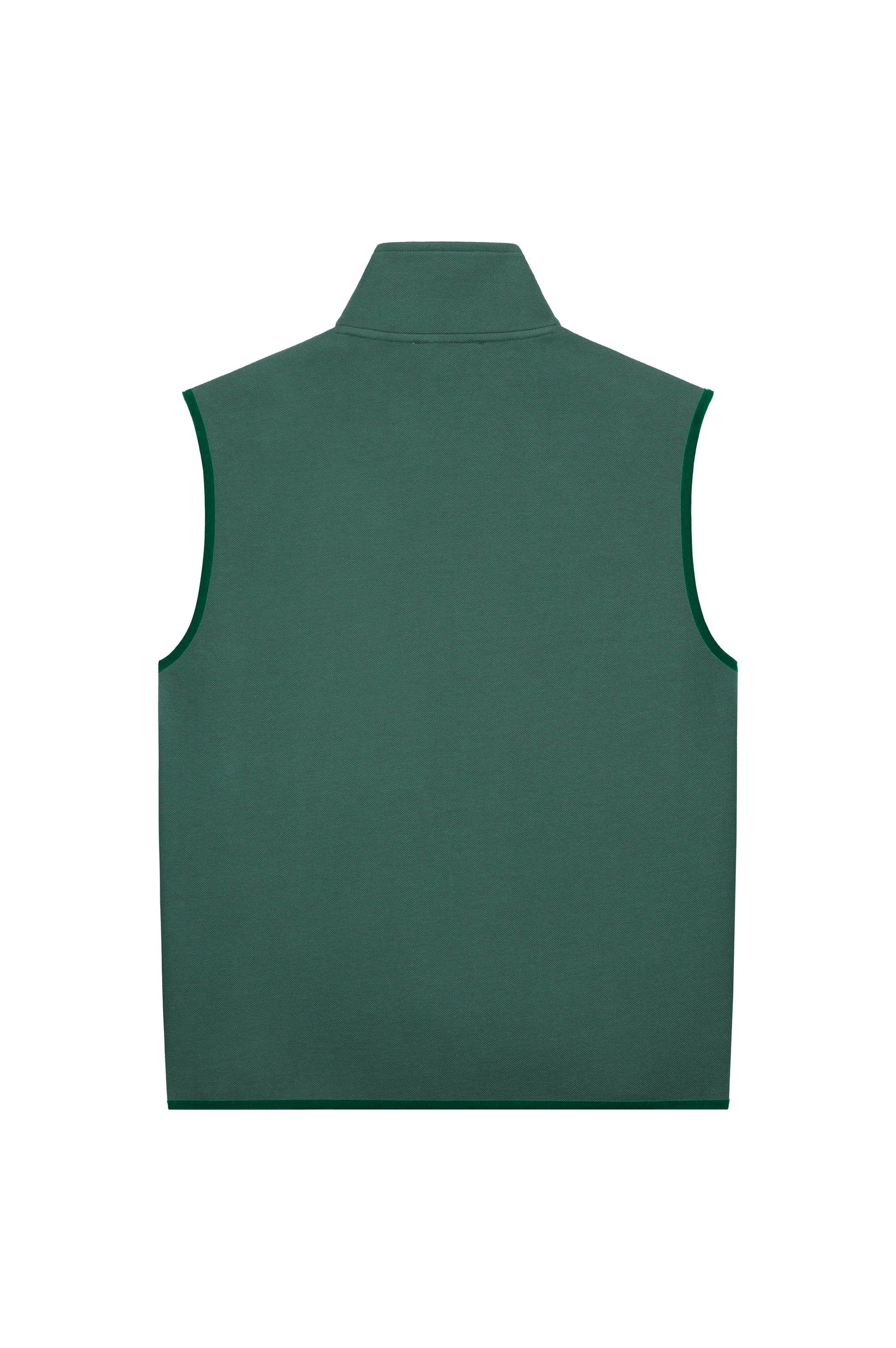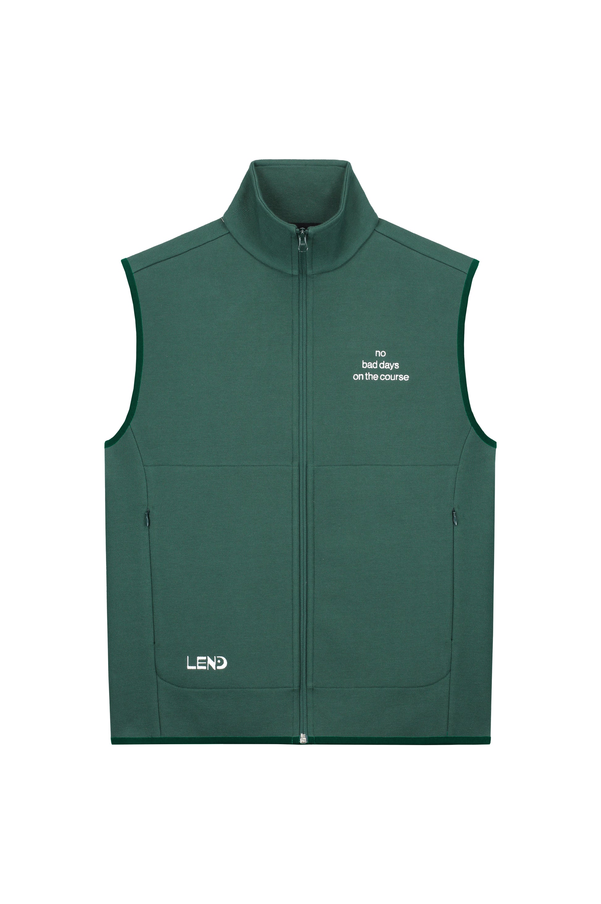 This is our LEND No Bad Days Vest. It's made of our bio-cotton pique, bonded with a super soft jersey. It has two zipped pockets to take care of your stuff. Just the right fit for those colder days ,on and off the course. Proudly produced in Portugal.