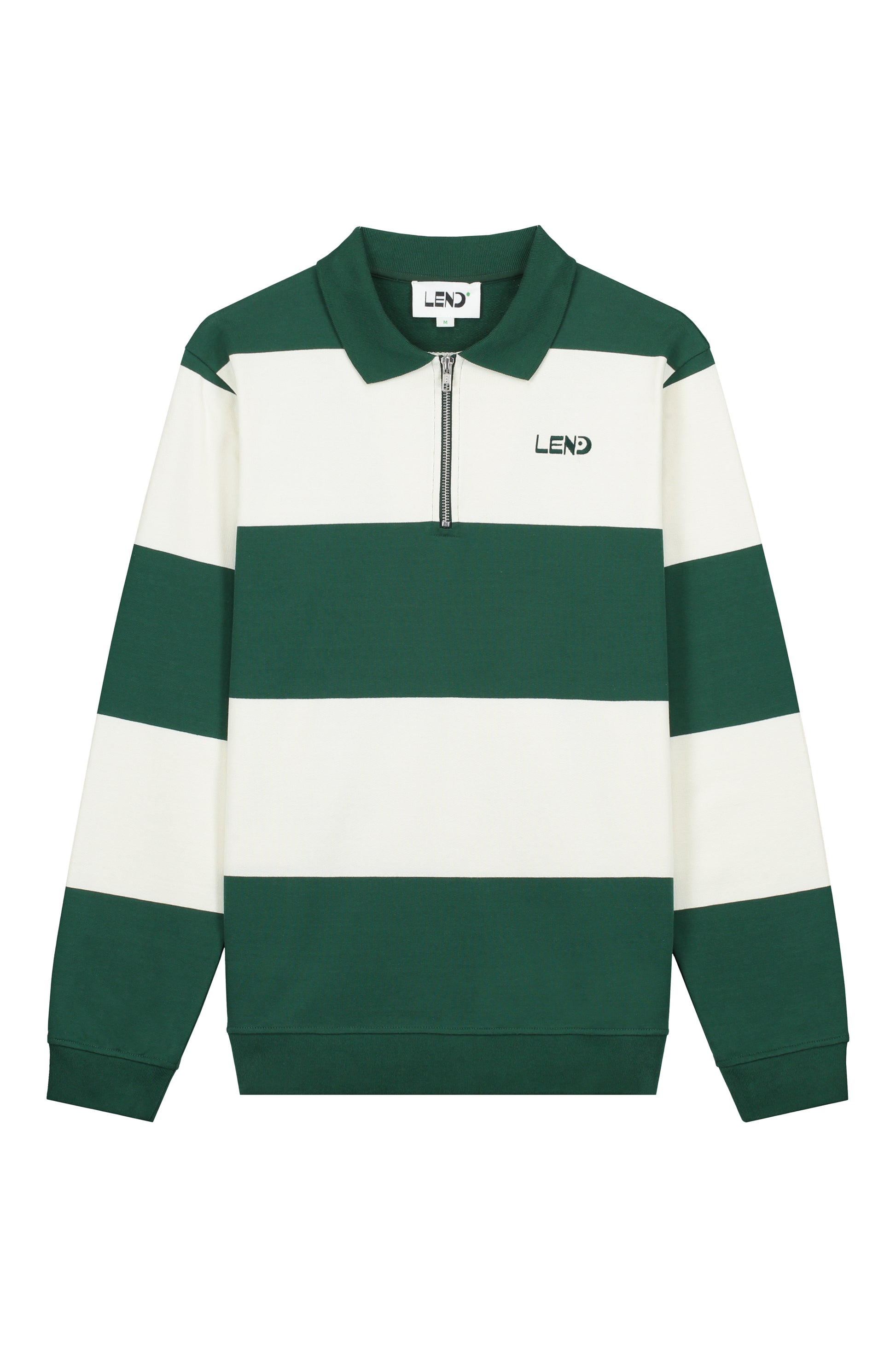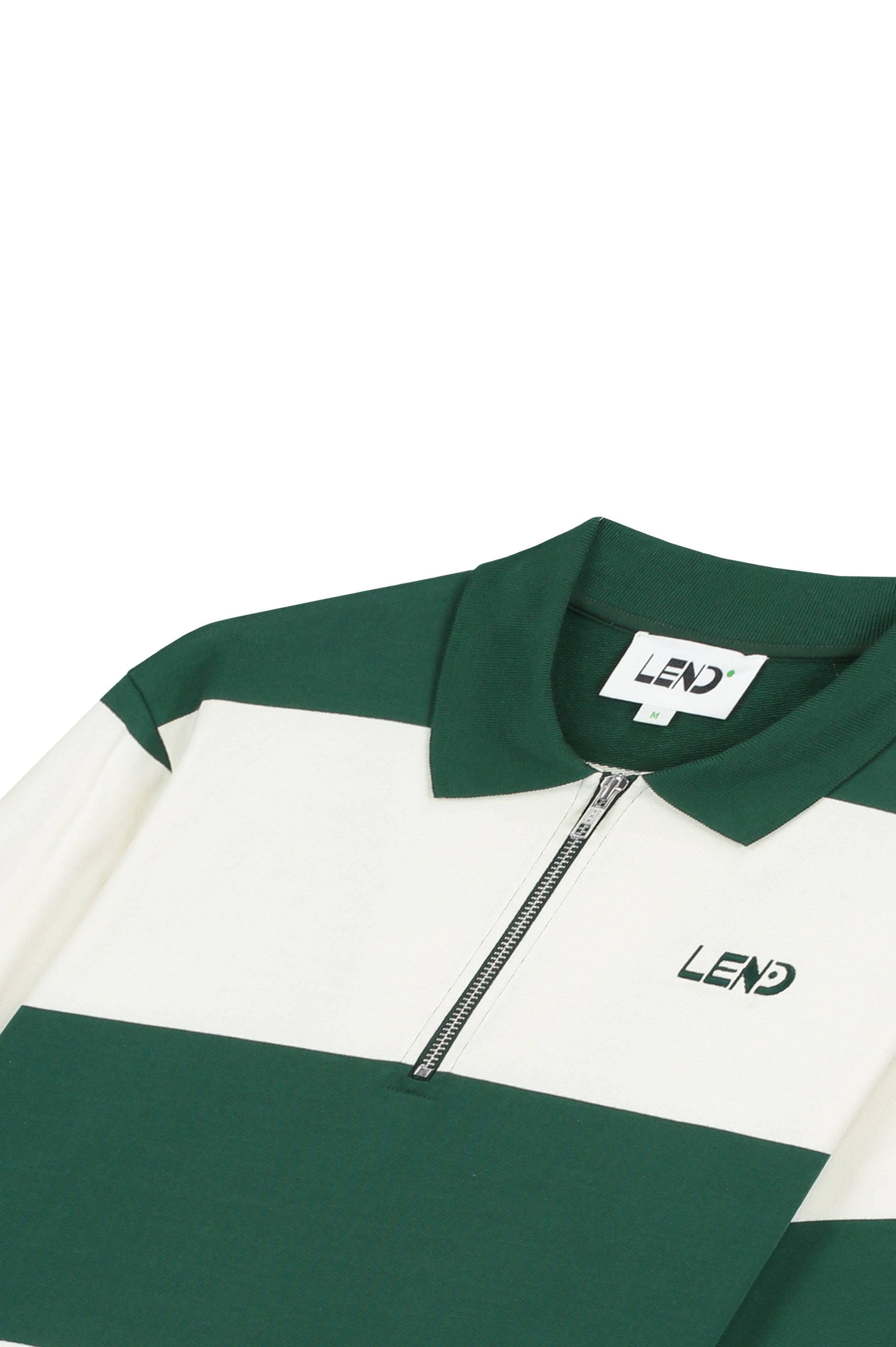 Introducing our BLOCK STRIPE rugby shirt, a fresh take on the classic rugby shirt, made in Portugal from 100% premium cotton. Featuring bold block stripes and a stylish quarter-zip for that modern edge. The classic crewneck fit ensures all-day comfort, while our signature LEND "anyone everywhere" print on the back makes a statement wherever you go. Finished with the embroidered LEND logo on the chest, this rugby shirt is perfect for those who love to stand out with confidence and style.