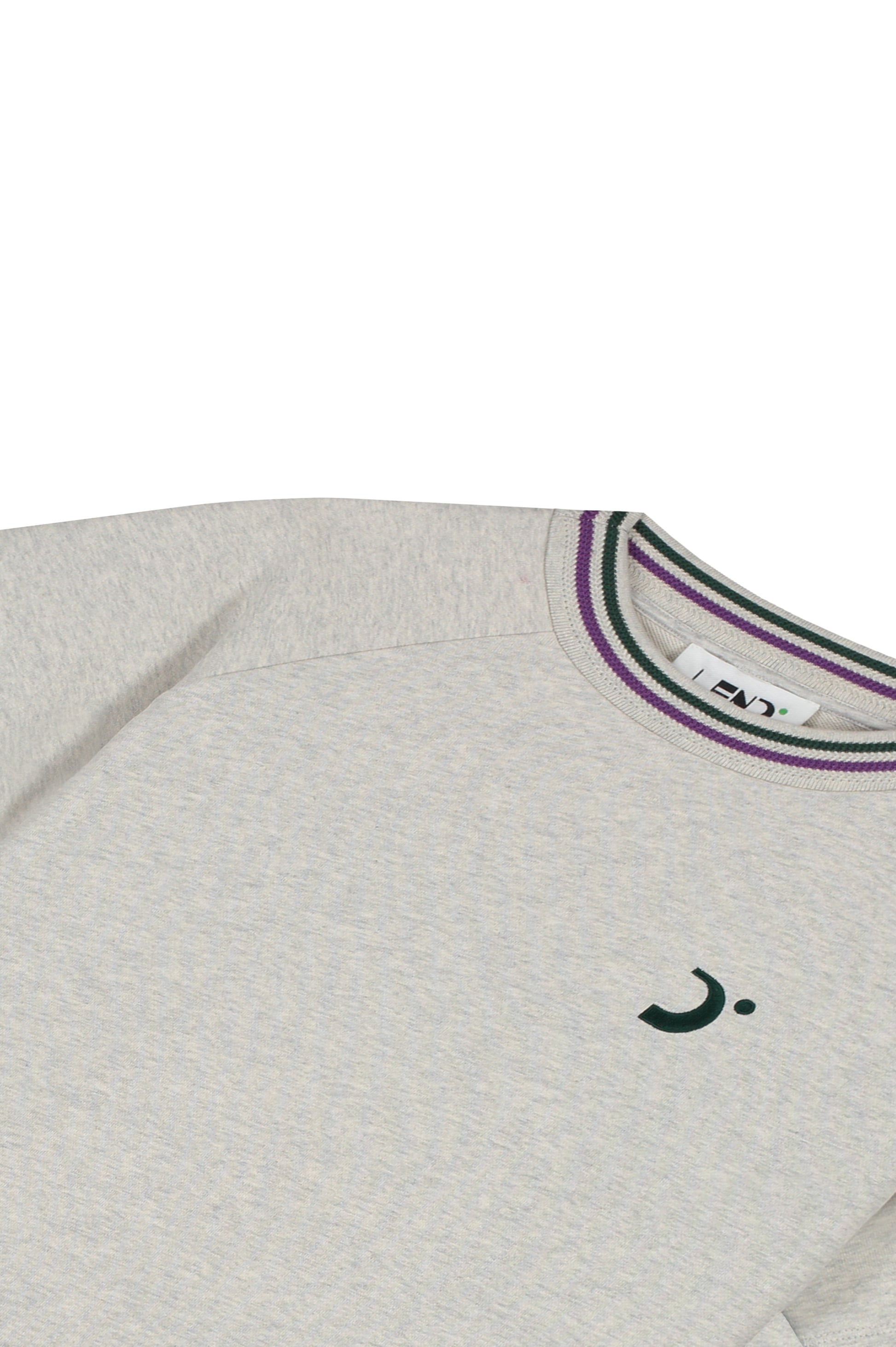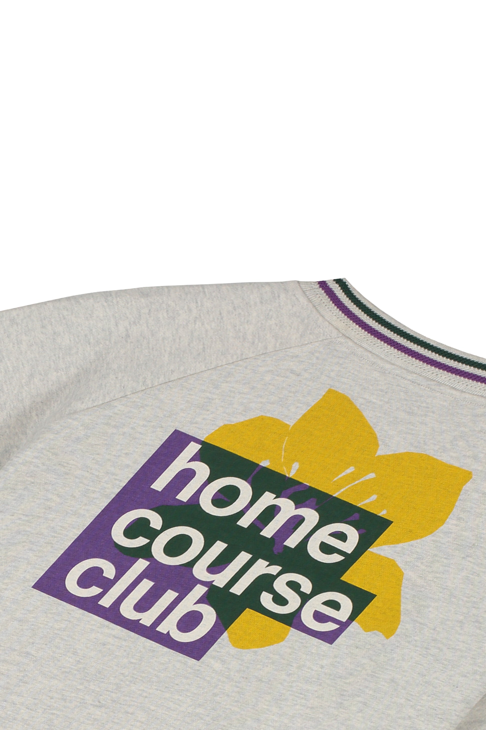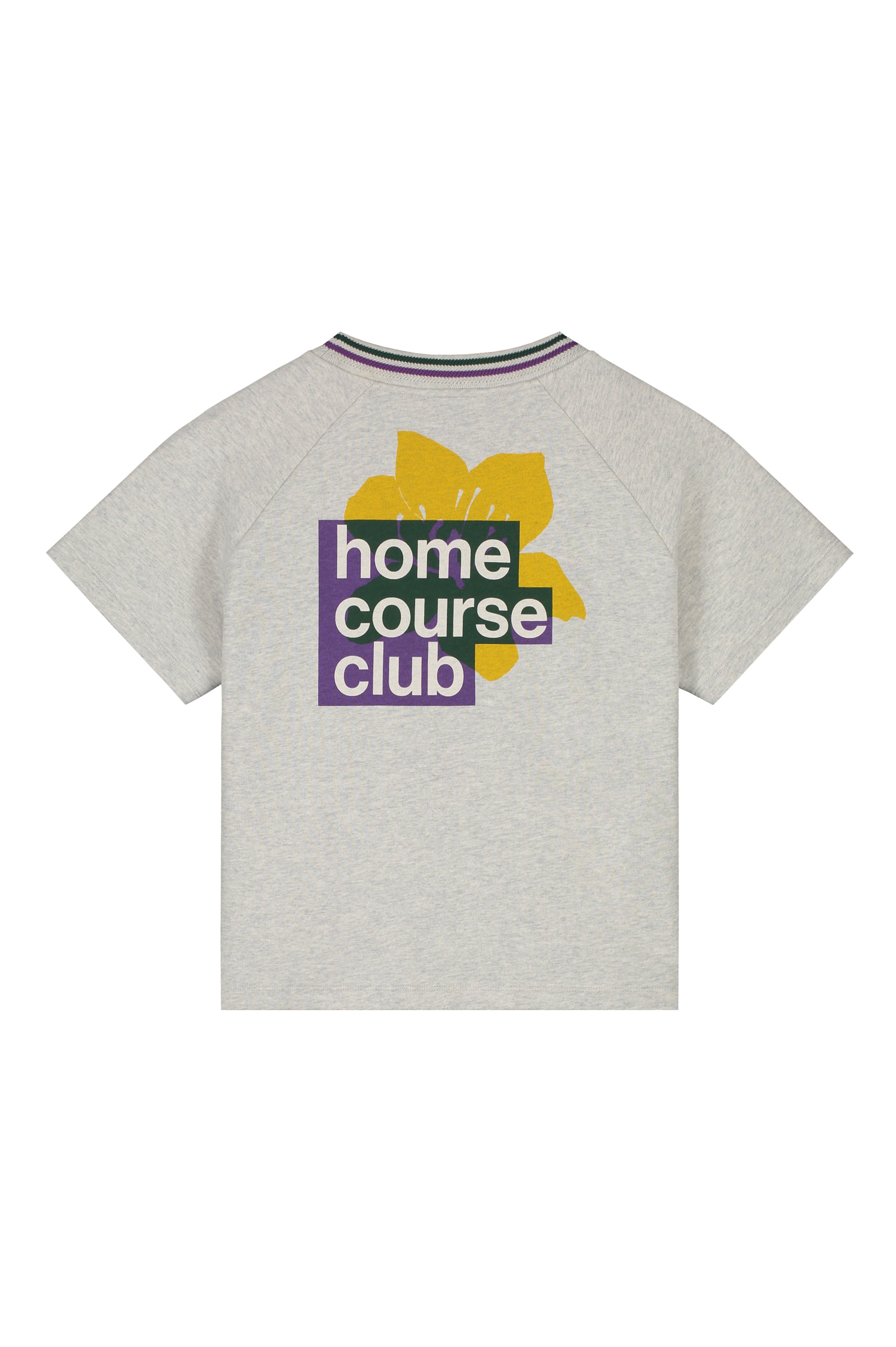 A striped trim crew neck adds a subtle pop of contrast, while our monogram is embroidered on the front for a clean, elevated touch. The back showcases our signature Home Course Club print :